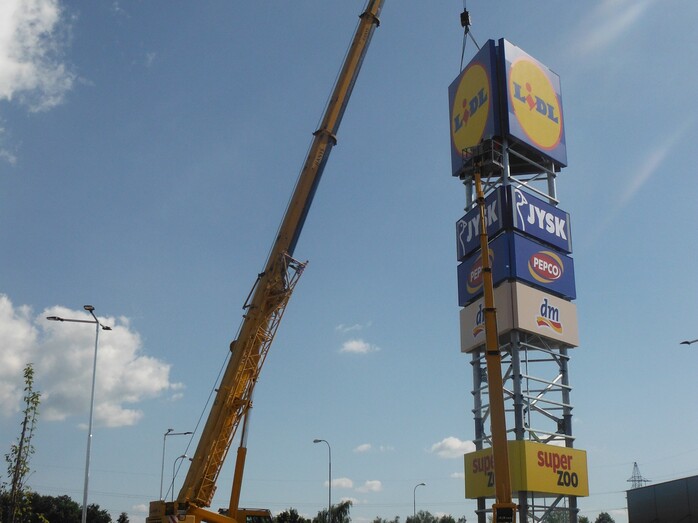 Začátkem června 2020 jsme dokončili montáž reklamního pylonu v Retail parku - České Budějovice.