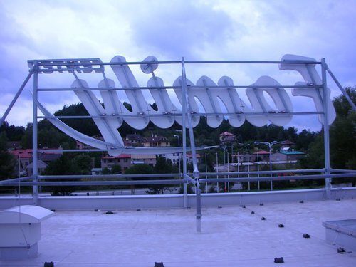 • přední strana písmen CENTER a linky z perspexu + polep folií Oracal