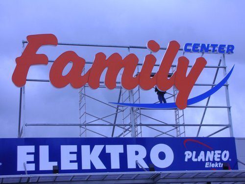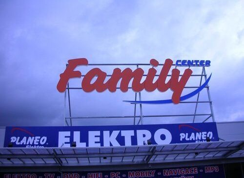 • přední strana písmen Family z plexiskla opál + polep folií Oracal