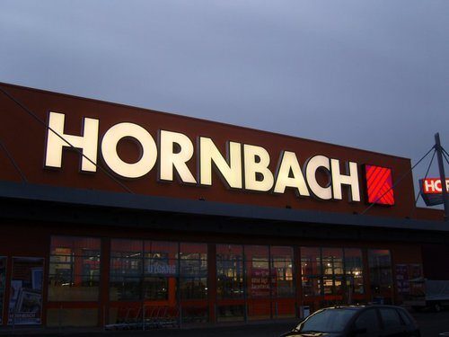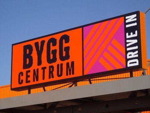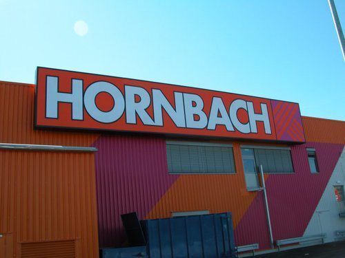 Reklamní prvky pro síť obchodního řetězce HORNBACH v Botkyrce