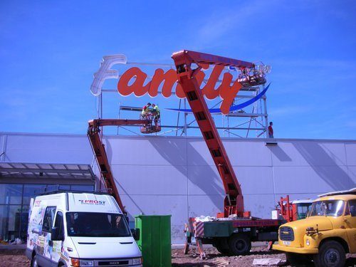 • Frontseite der Buchstaben CENTER und Linien aus Plexiglas + Oracal-Folie