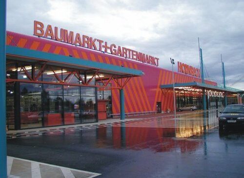 Werbeelemente für die HORNBACH-Kette in Graz, Österreich